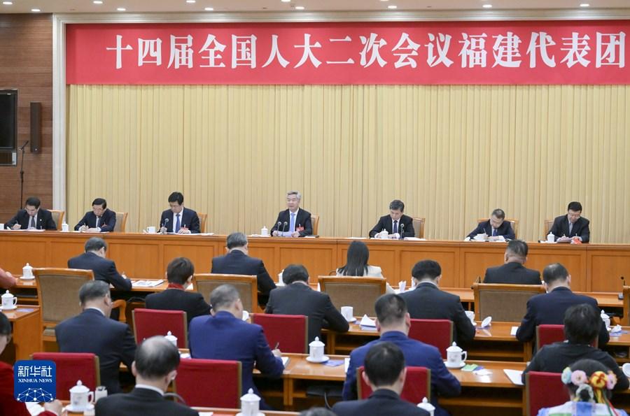 3月5日,中共中央政治局常委、中央纪委书记李希来到他所在的福建代表团,同代表们一起审议政府工作报告。新华社记者 高洁 摄